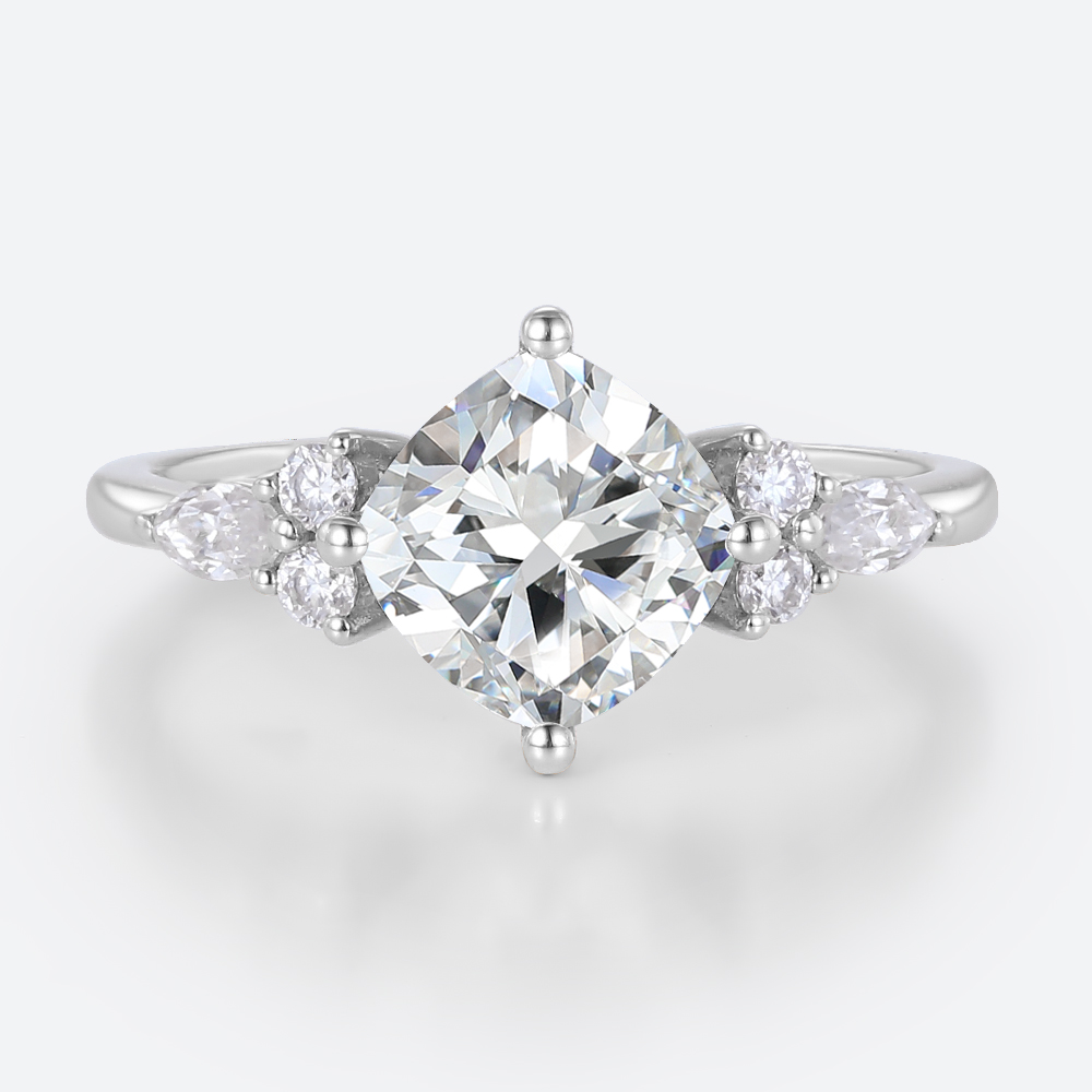 Cushion Cut Lab Grown Diamond Cluster 4-Prong Engagement Ring in Rose Gold