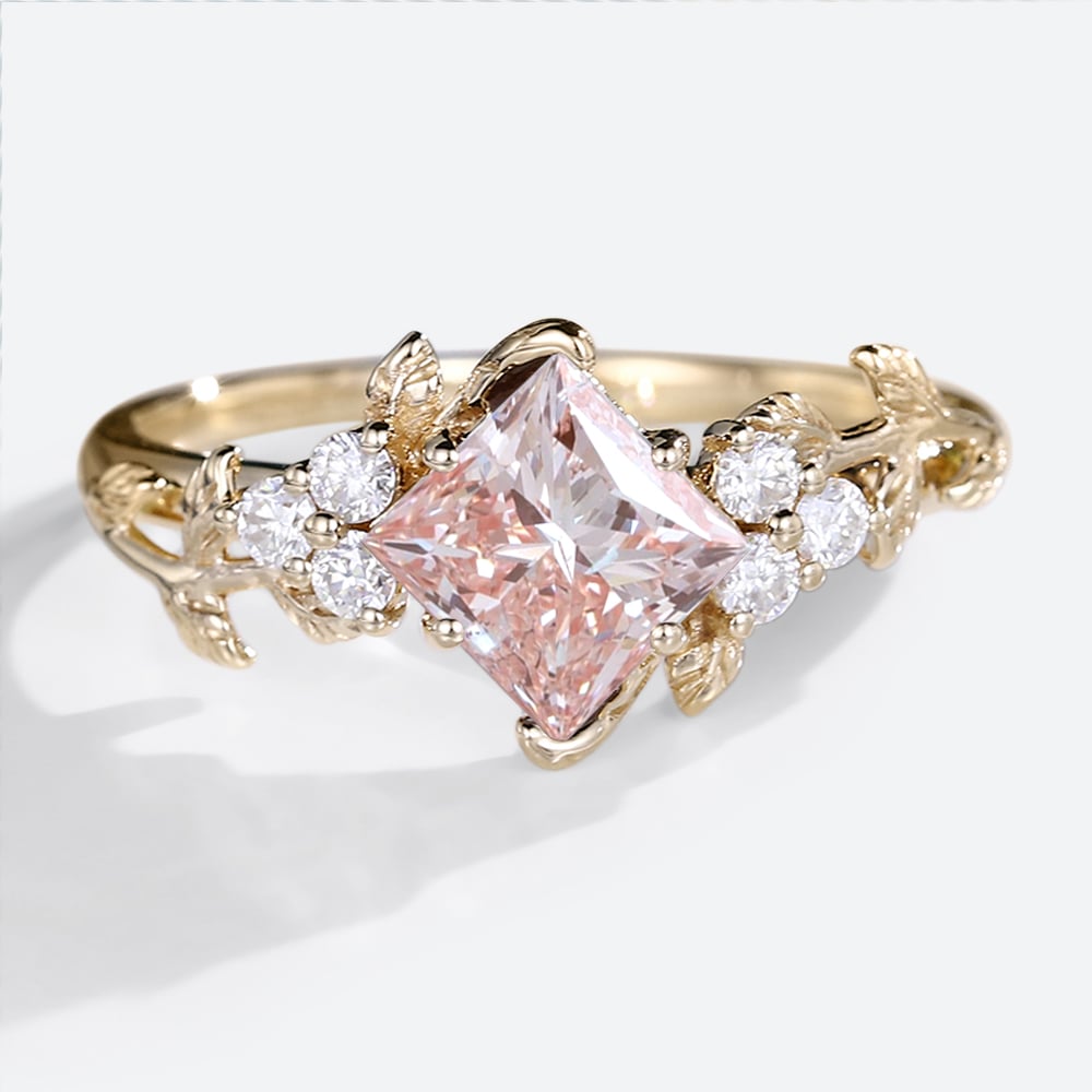 1.5ct Fancy Pink VS+ Princess Cut Lab Grown Pink Diamond Vine 4-Prong Engagement Ring in Rose Gold