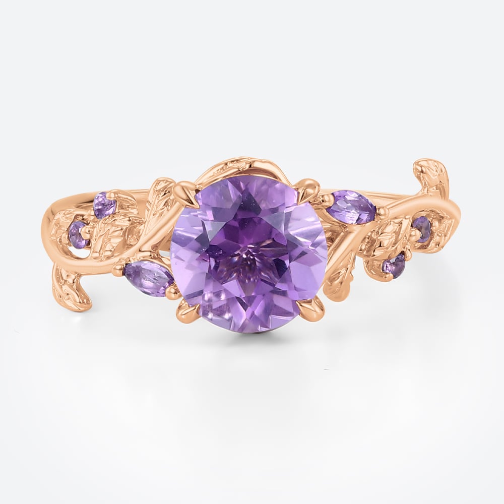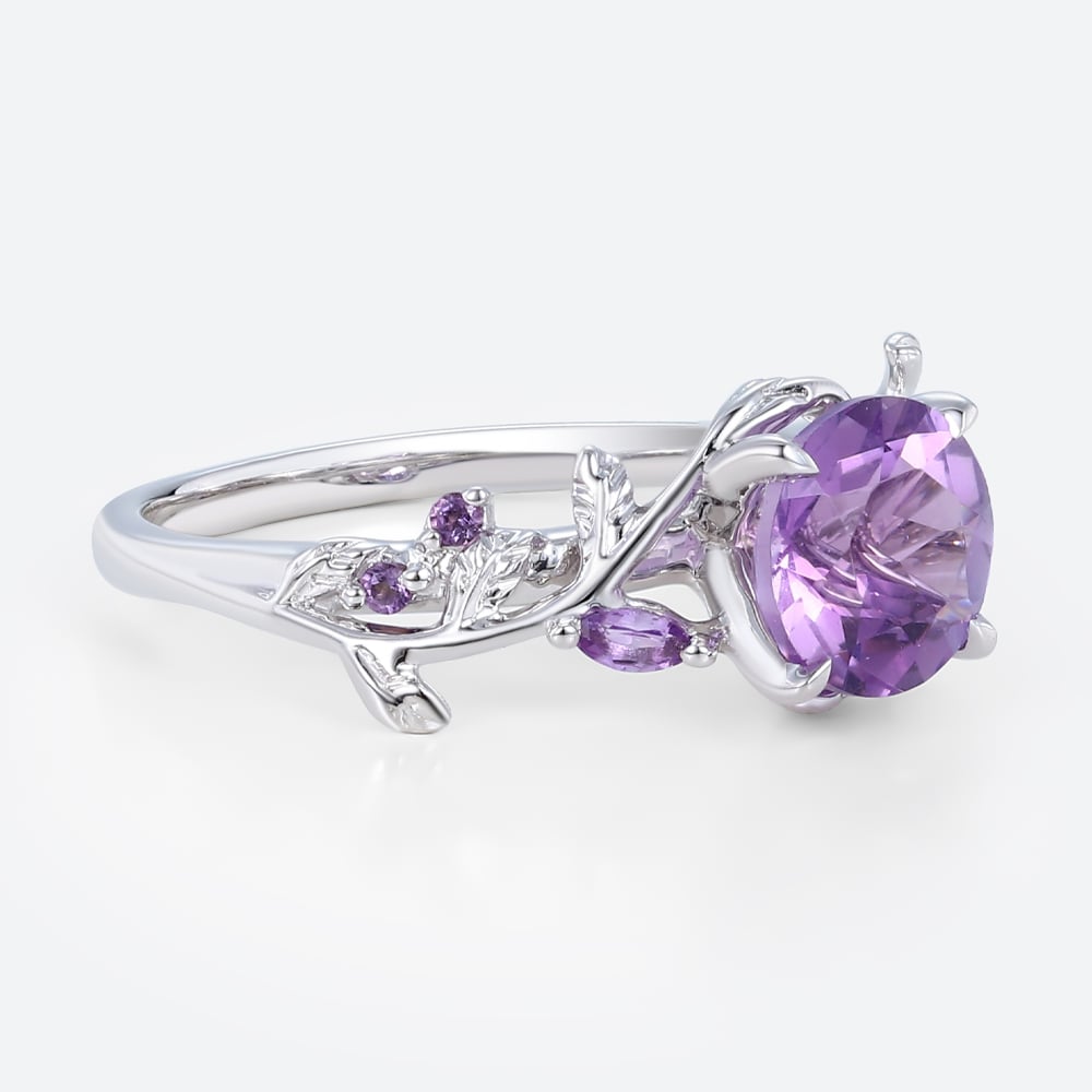 Round Cut Amethyst Nature-Inspired Engagement Ring in White Gold