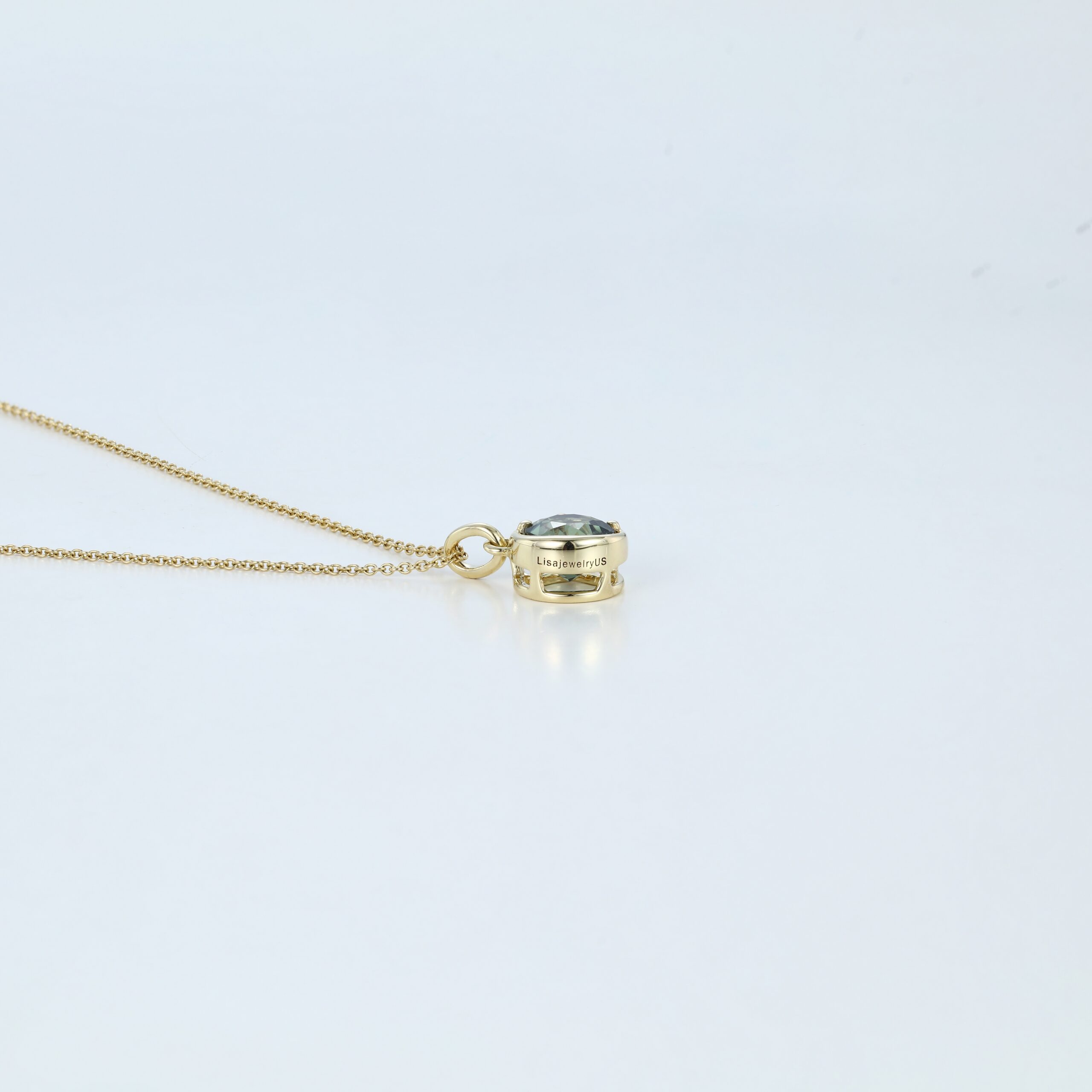 Round Cut Green Sapphire Solitaire Necklace Celestial Glow Pendant in Yellow Gold