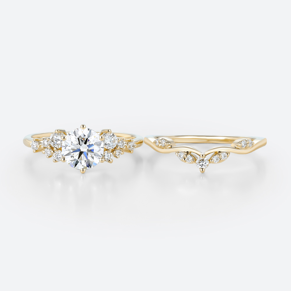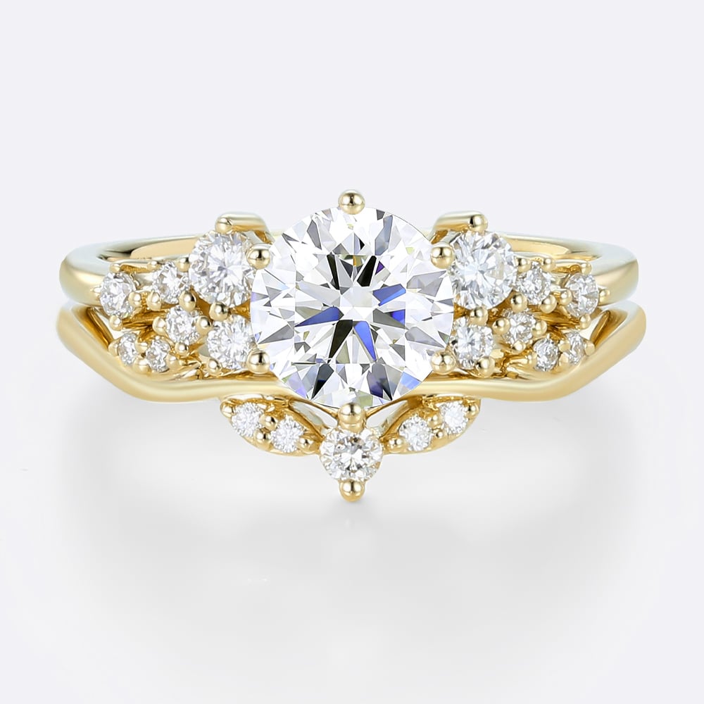 Round Cut Lab Grown Diamond Vintage 6-Prong Engagement Ring Set in Yellow Gold
