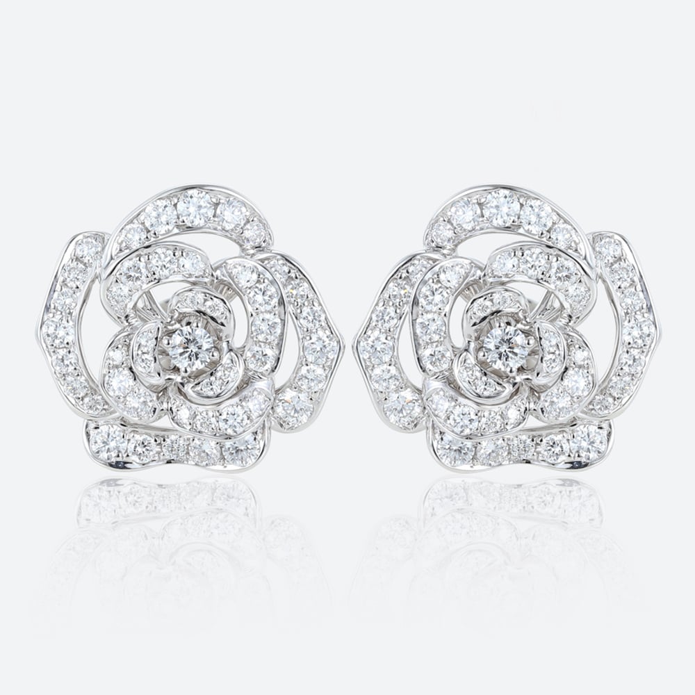 Round Cut Lab Diamond Floral Stud Earrings Blooming Camellia Earrings
