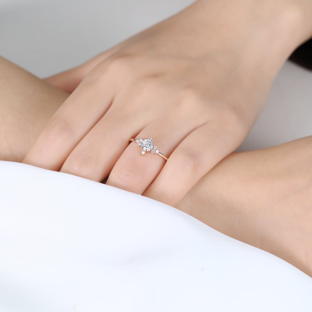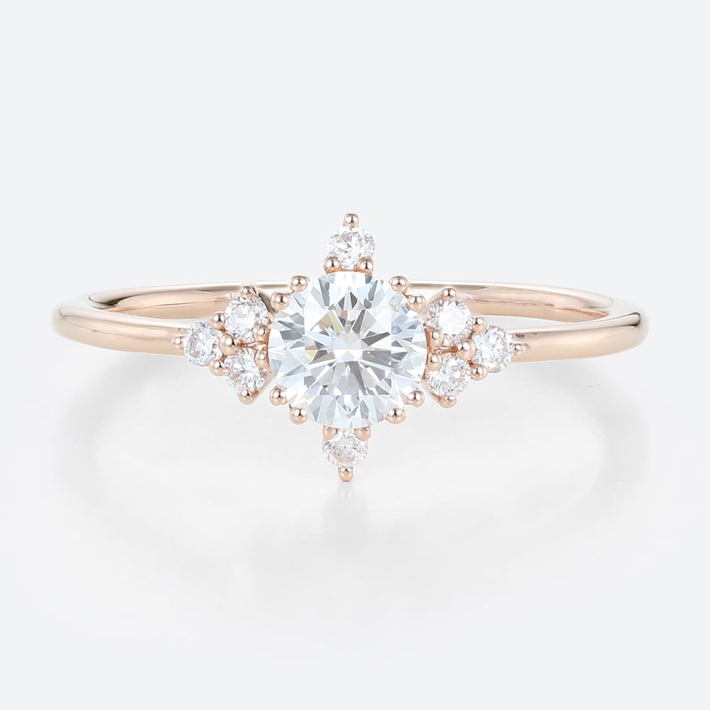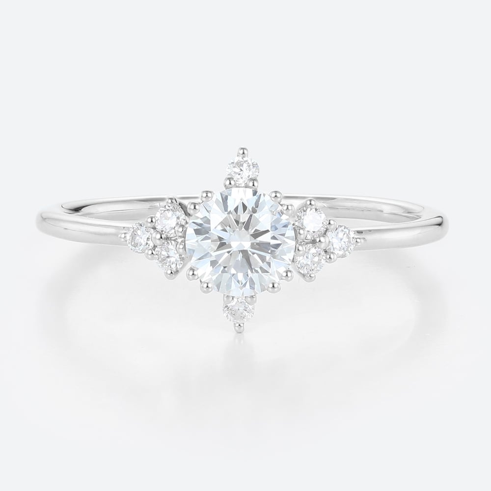 Round Cut Lab Grown Diamond Vintage Cluster Engagement Ring