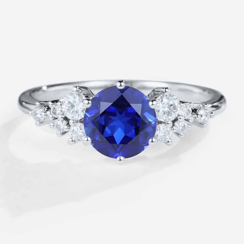 Round Cut Lab Sapphire Cluster Engagement Ring Classic Bridal Ring