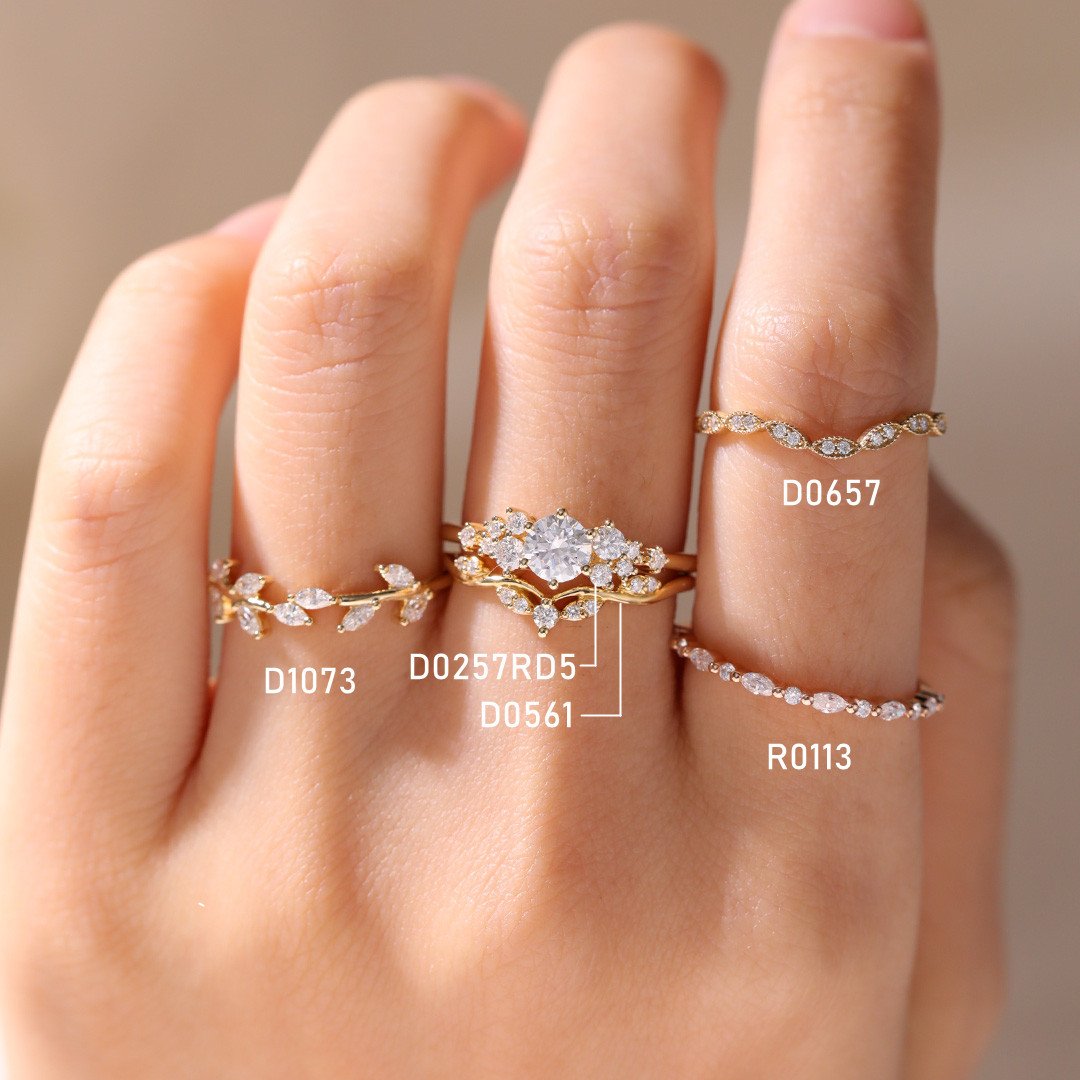 Round Cut Moissanite Engagement Rings Cluster Bridal Ring