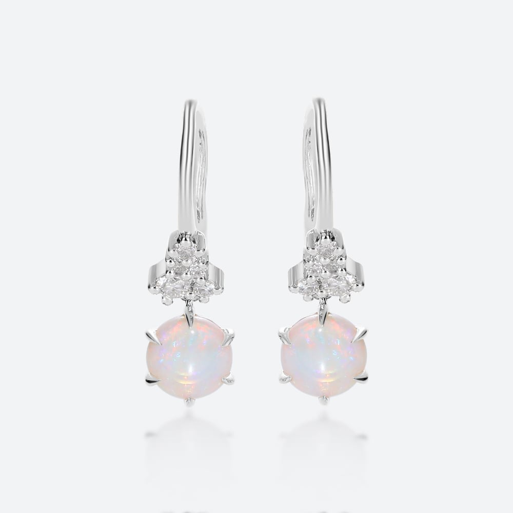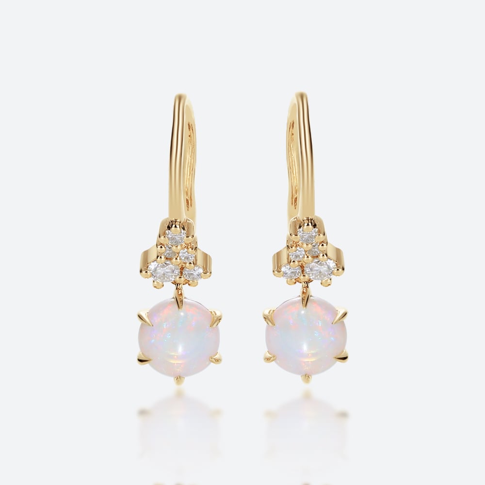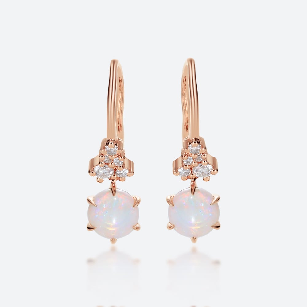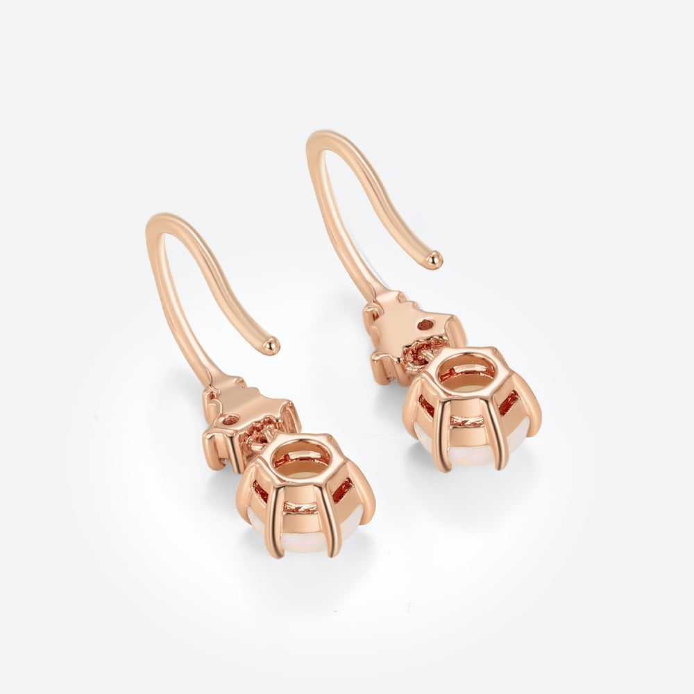 Round Cut Opal Modern Minimalist Drop Earrings with Diamond Accents in Rose Gold