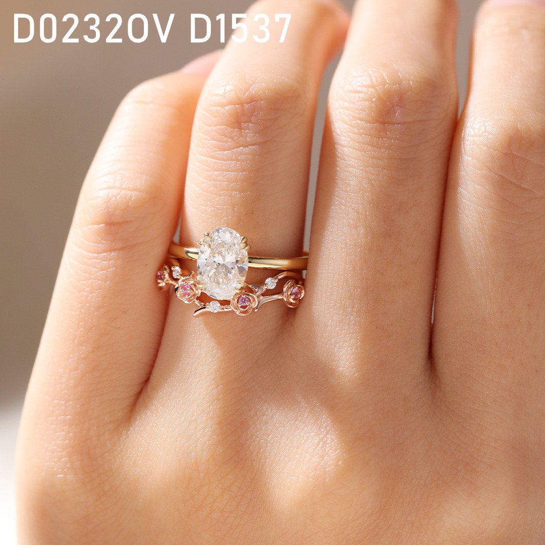 For your reference, the product photo features 0.07ctw stones set in 14K rose gold, with a band width of 1.5mm.