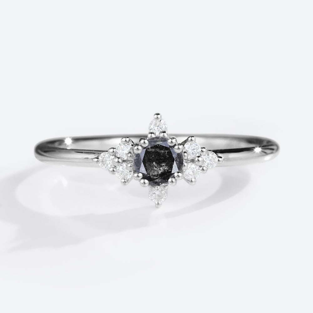 Solid Gold Round Cut Salt & Pepper Diamond Engagement Rings Cluster Wedding Bands