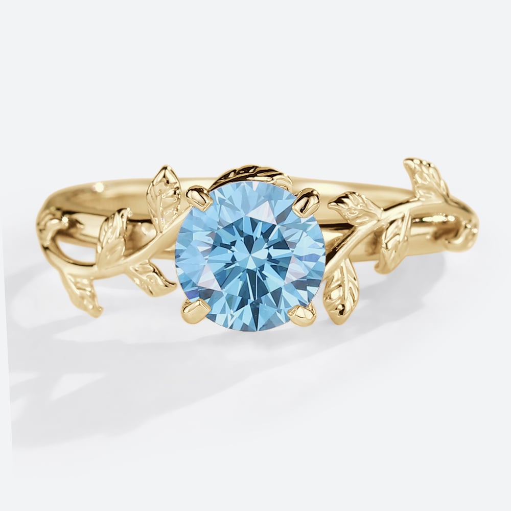 1ct Fancy Blue VS+ Round Cut Lab Grown Blue Diamond Solitaire 4-Prong Engagement Ring in White Gold