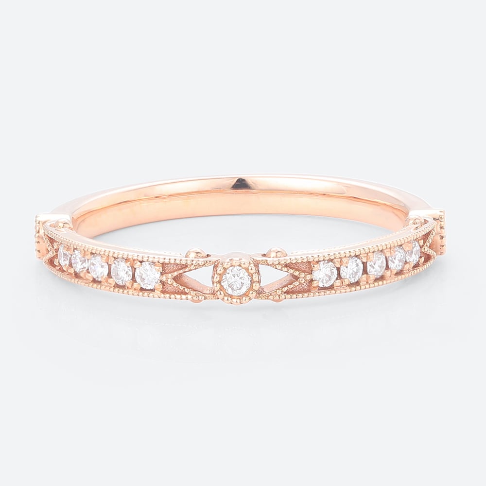 0.17ctw Round Cut Lab Grown Diamond Beaded Wedding Band Vintag-Inspired Stacking Ring in Rose Gold