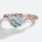 Solid Rose Gold Round Cut Moss Agate Cluster Twisted Band Engagement Promise Ring