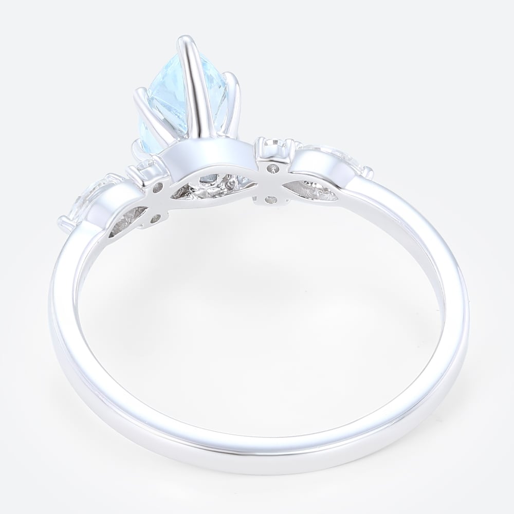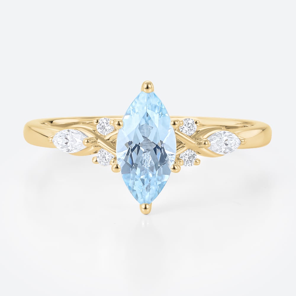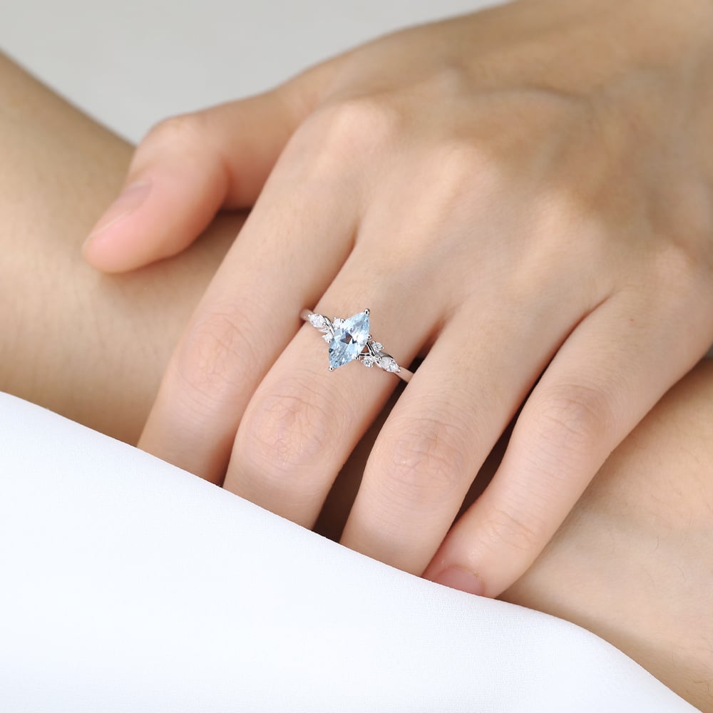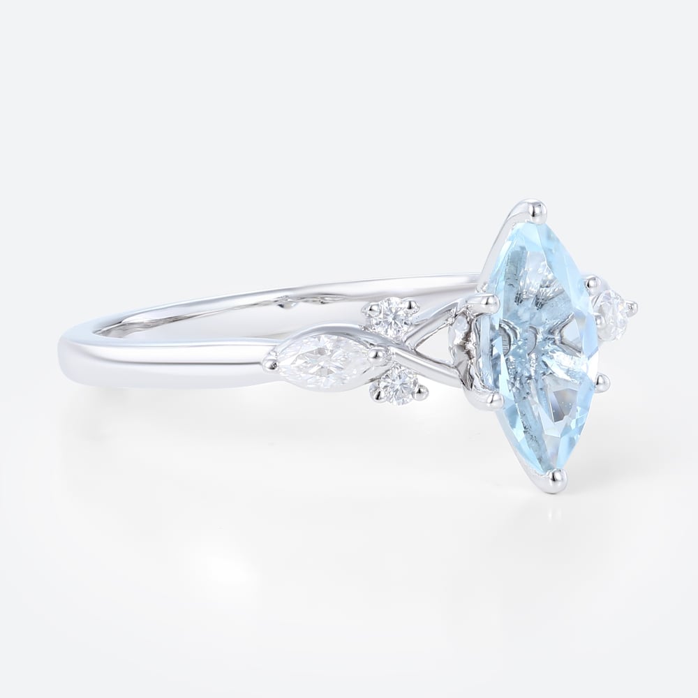 White Gold Ring Marquise Cut Diamond & Aquamarine Engagement Ring