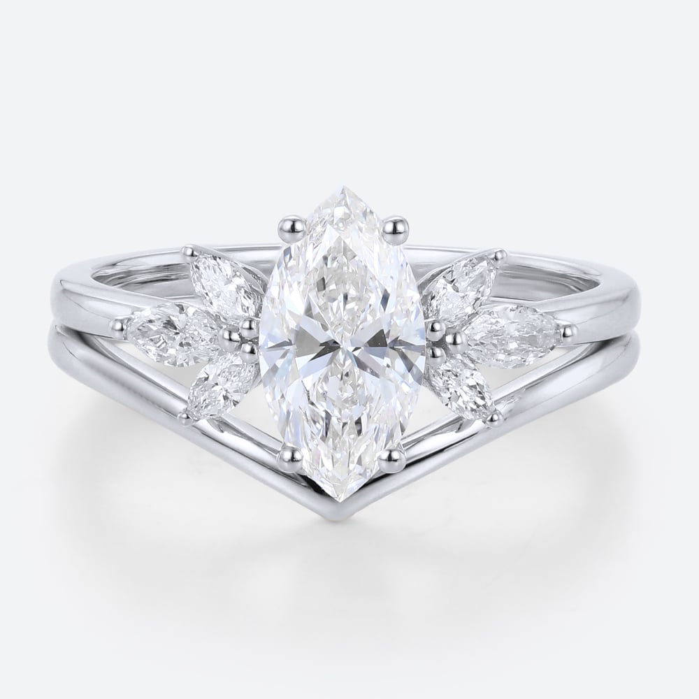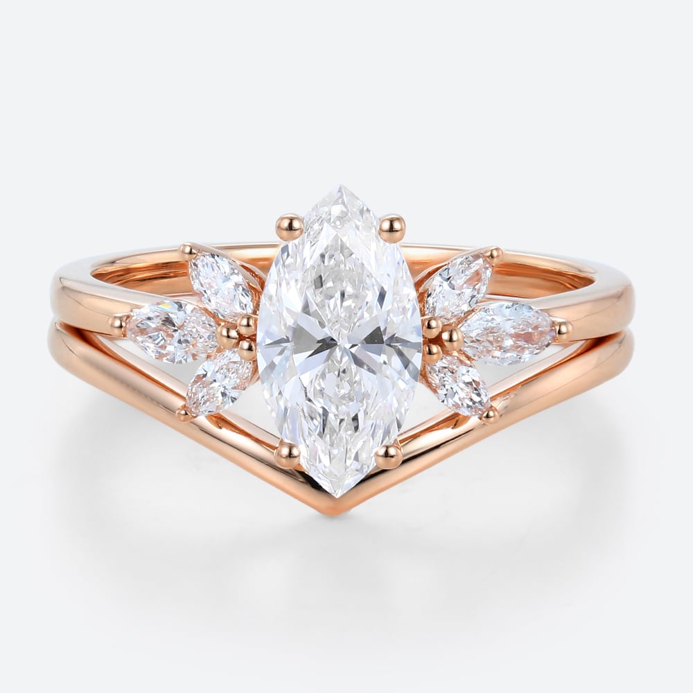 1ct Colorless VS+ Marquise Cut Lab Grown Diamond Vintage 6-Prong Engagement Ring Set in Rose Gold