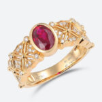 Vintage Oval Cut Ruby Ring Bezel Engagement Ring Hollow Ring
