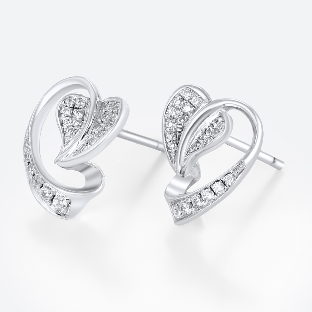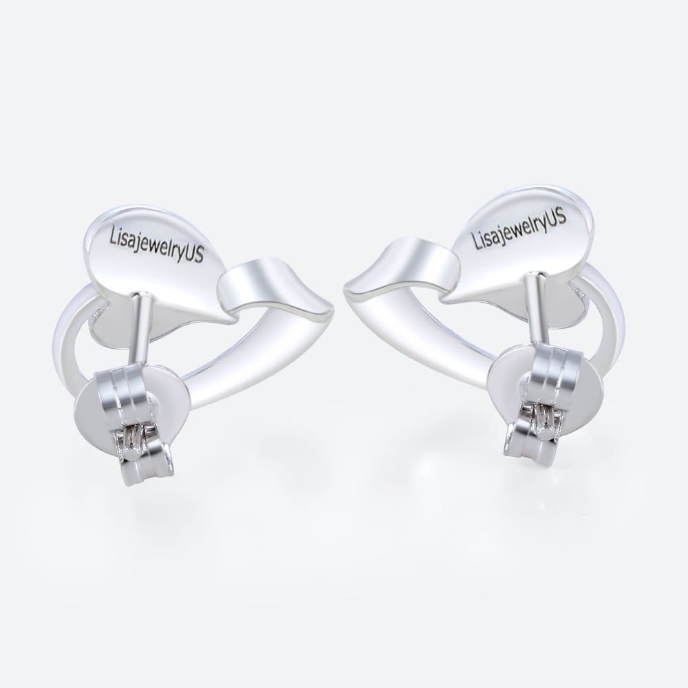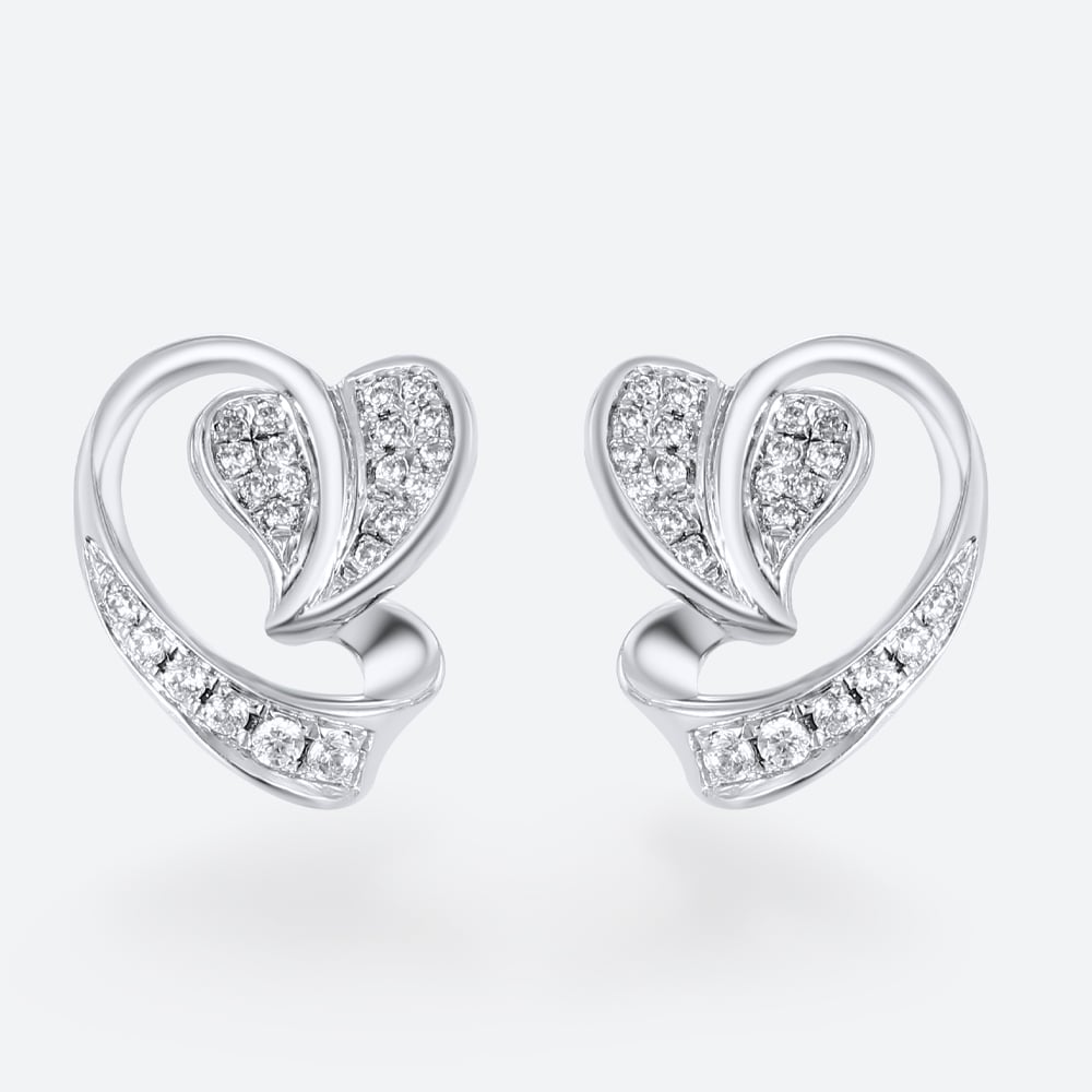 Round Cut Lab Grown Diamond Pavé Stud Earrings Heart Earrings