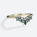 Yellow Gold Marquise Cut Green Blue Sapphire Twisted Curved Wedding Band
